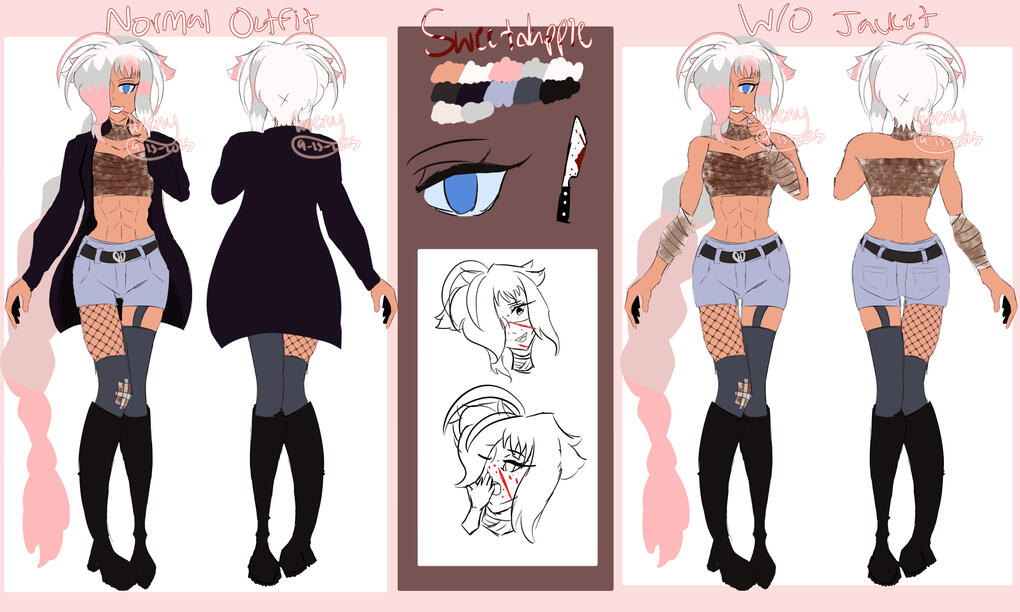 Included will be a front view of your character and their color palette, as well as their eye/eye shape close-up (and a head if I have room on my canvas).
